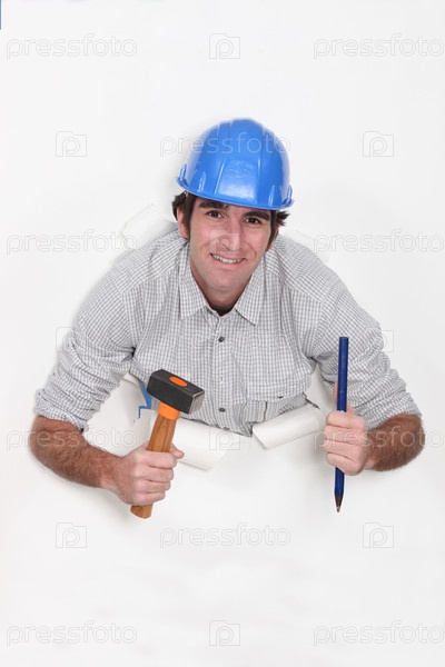 Строитель с молотком и зубилоом