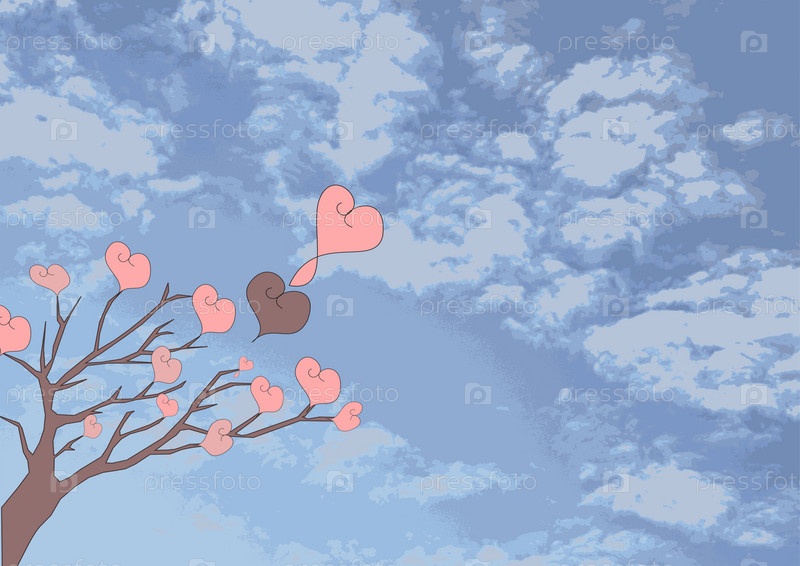 Дерево с сердечками на фоне облачного неба
