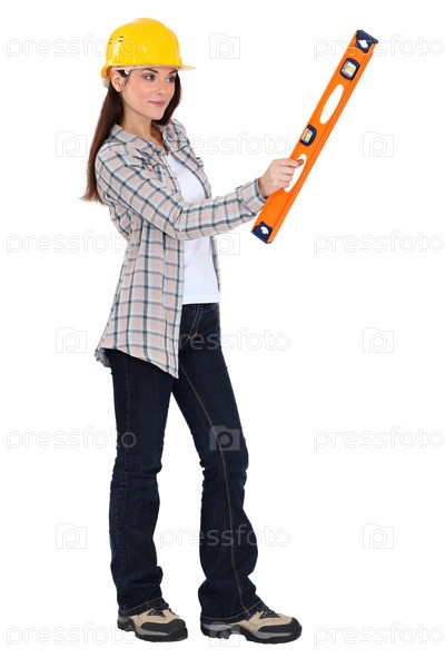 Женщина, держащая уровень