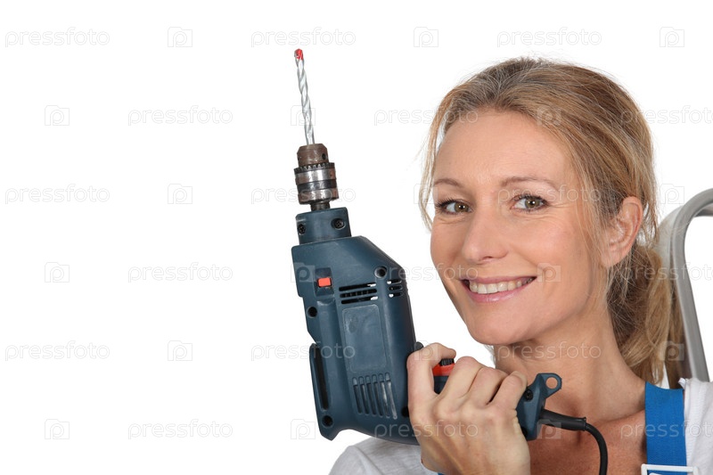 Женщина держит электродрель