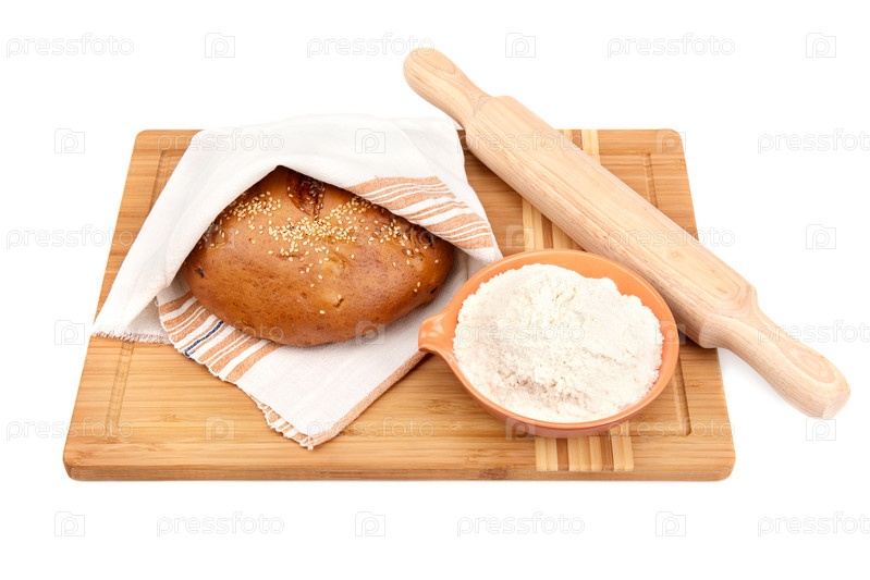 Хлеб и кухонные принадлежности на белом фоне