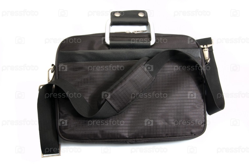 Стильная черная сумка для ноутбука на белом фоне