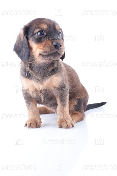 Маленький щенок таксы на белом фоне