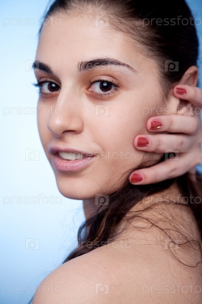 Портрет девушки на голубом фоне