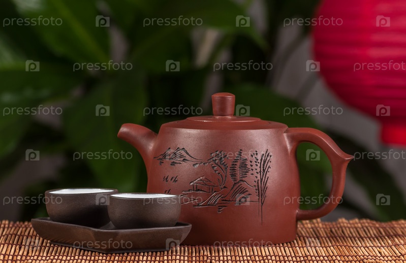 Композиция с китайским чайником и чашками