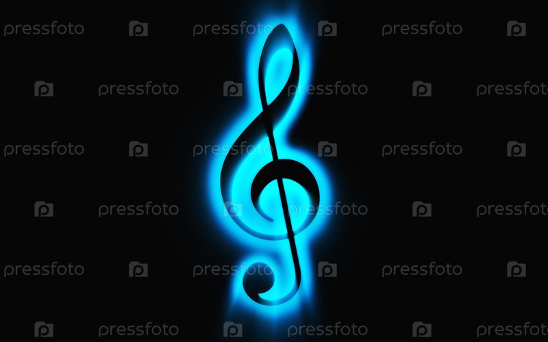 Светящийся музыкальный символ на черном фоне