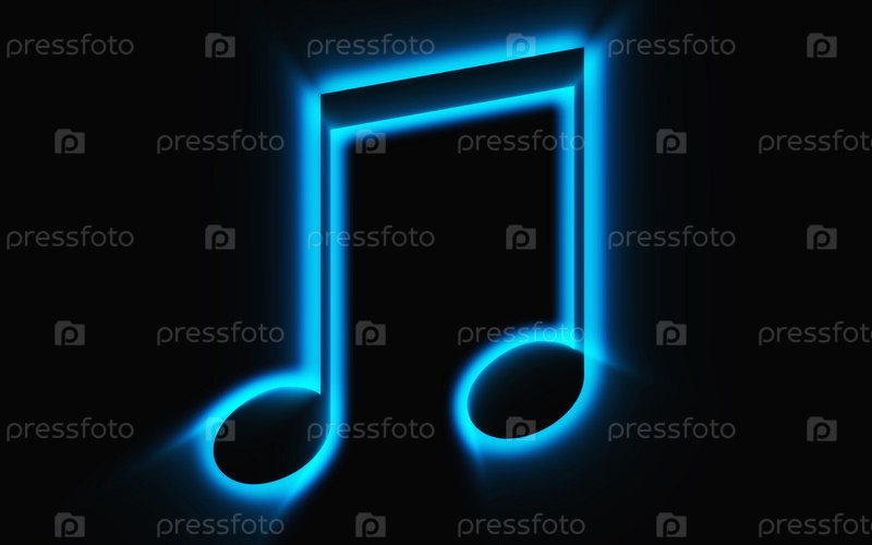 Светящийся музыкальный символ на черном фоне