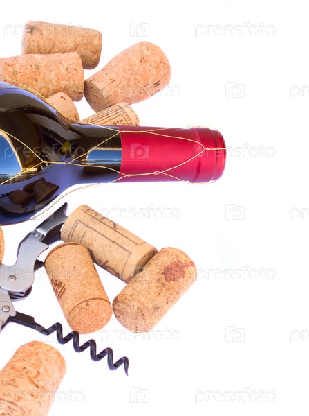 Бутылка красного вина и пробки