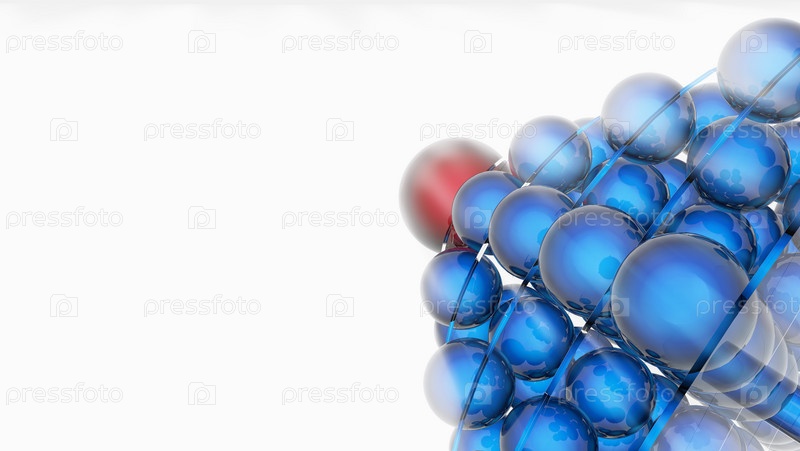 Пирамида из синих шаров с красным широм наверху на белом фоне