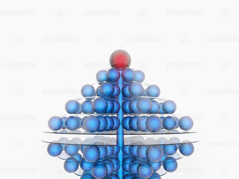 Пирамида из синих шаров с красным широм наверху на белом фоне