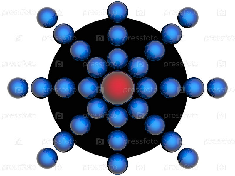 Пирамида из синих шаров с красным широм наверху на белом фоне