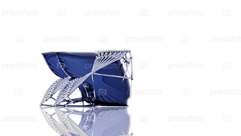 Голубой кристалл в металлической рамке на белом фоне