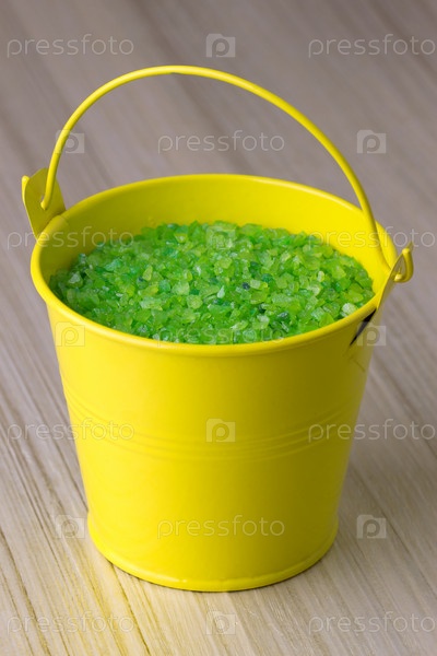 Желтое ведро с зеленой морской солью