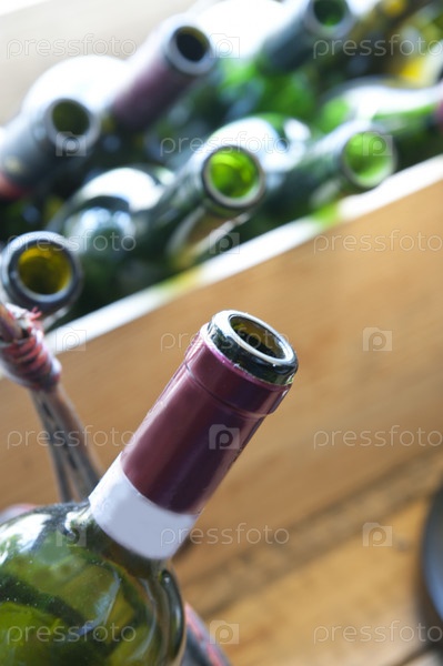 Пустые винные бутылки крупным планом