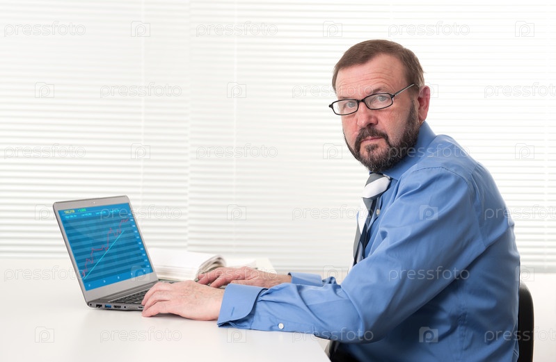 Бизнесмен работает на ноутбуке