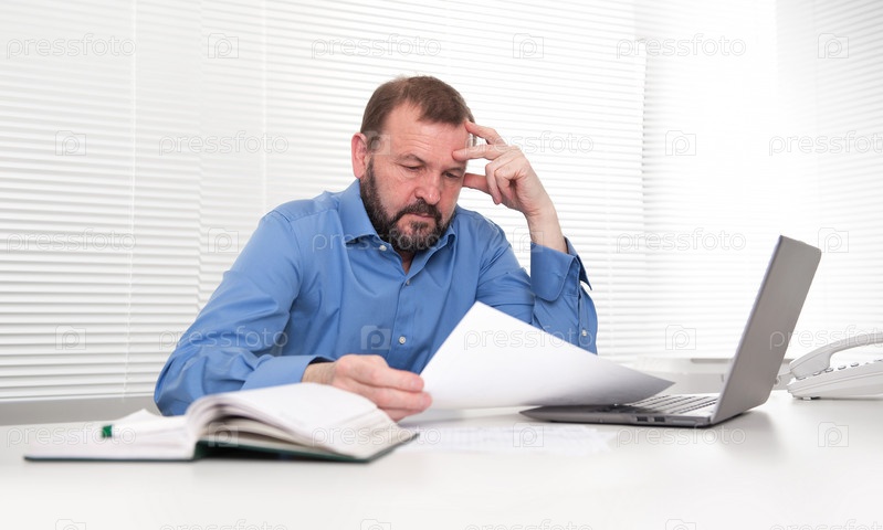 Бизнесмен работает на ноутбуке