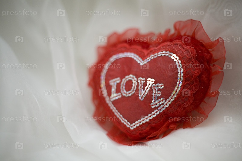 Игрушечное текстильное красное сердце с надписью Love