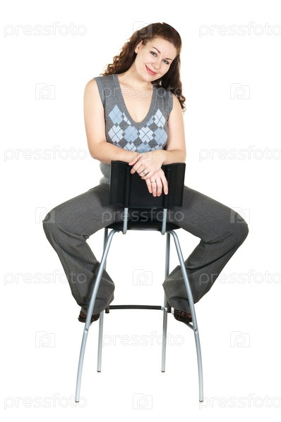 Девушка на стуле на белом фоне