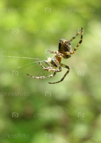 Паук на зеленом фоне крупным планом