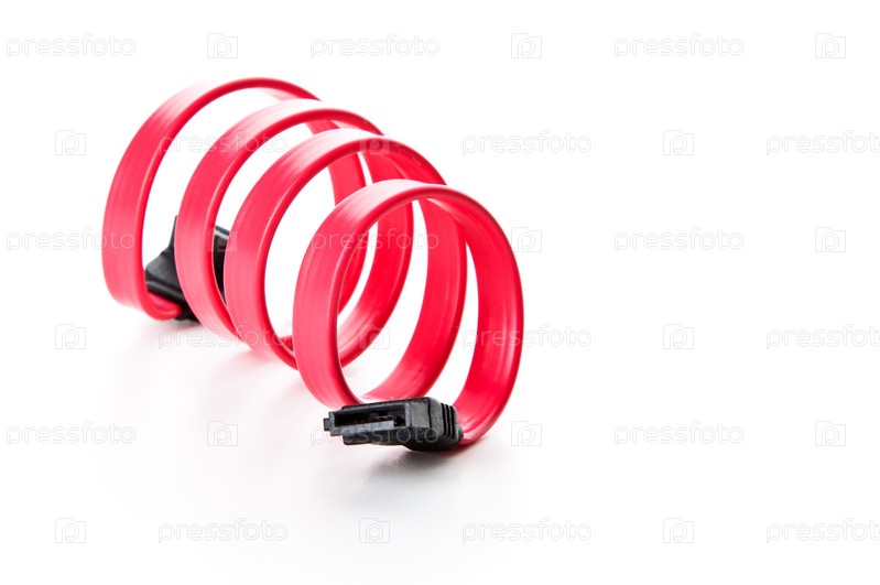 Красный кабель SATA на белом фоне