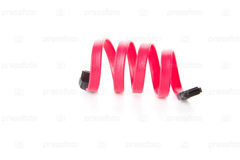 Красный кабель SATA на белом фоне