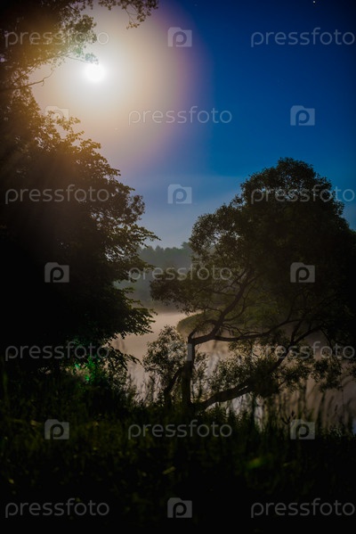 Река в ночное время с туманом
