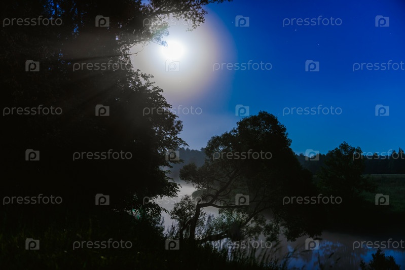 Река в ночное время с туманом