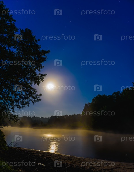 Река в ночное время с туманом