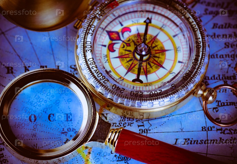 Компас и увеличительное стекло
