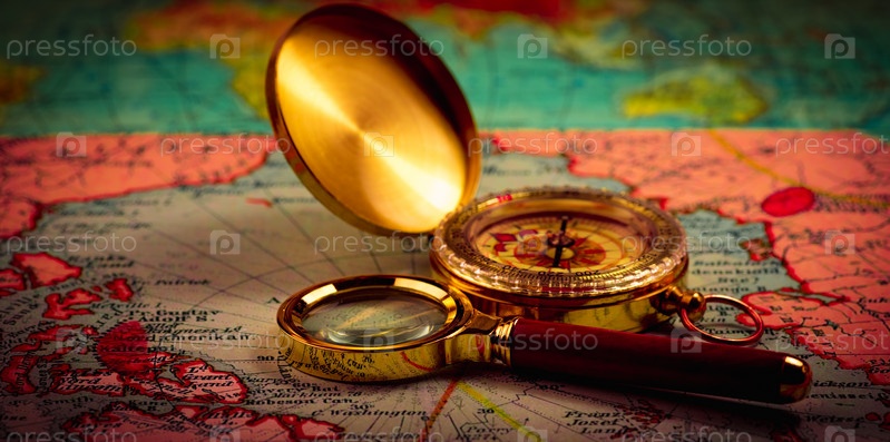 Компас и увеличительное стекло