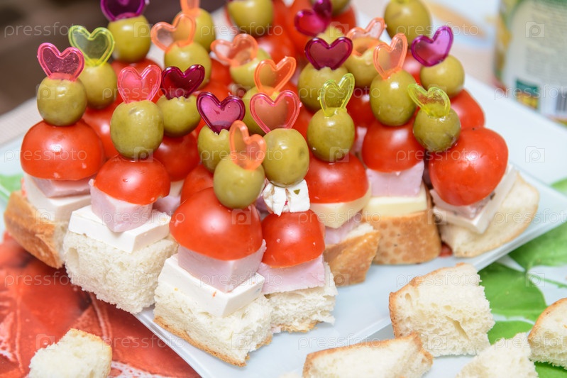 Канапе с ветчиной, помидорами и оливками