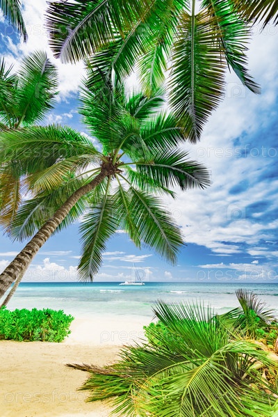 Красивый белый пляж на курорте Карибов