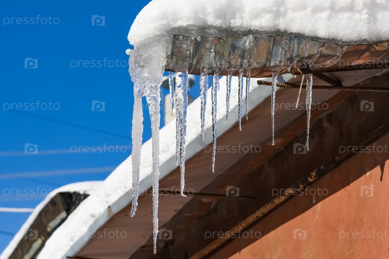 Сосульки свисают с крыши
