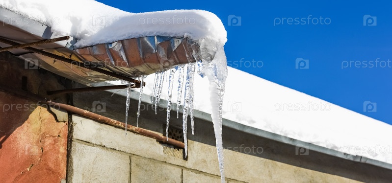 Сосульки свисают с крыши