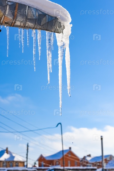 Сосульки свисают с крыши