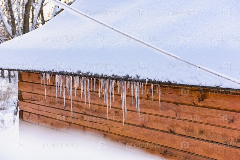Сосульки свисают с крыши