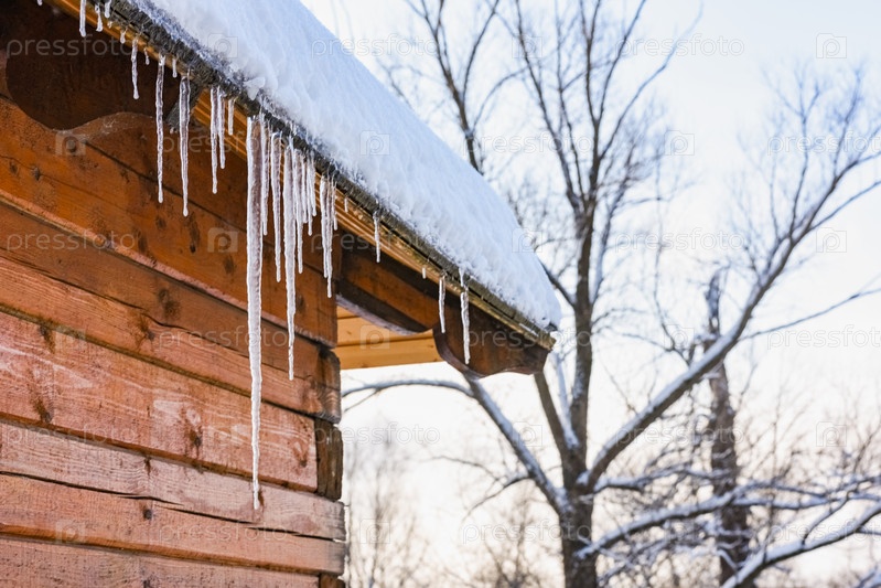 Сосульки свисают с крыши