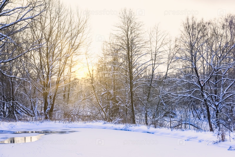 Закат в зимнем лесу