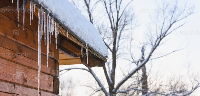 Сосульки свисают с крыши