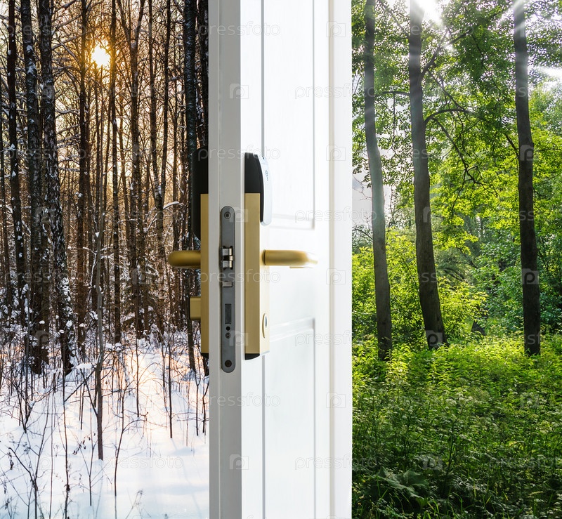 Открытая дверь и зимний лес
