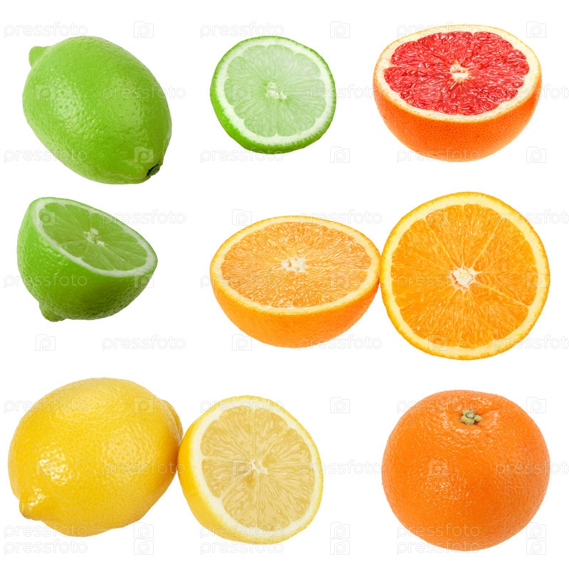 Цитрусовые фрукты на белом фоне