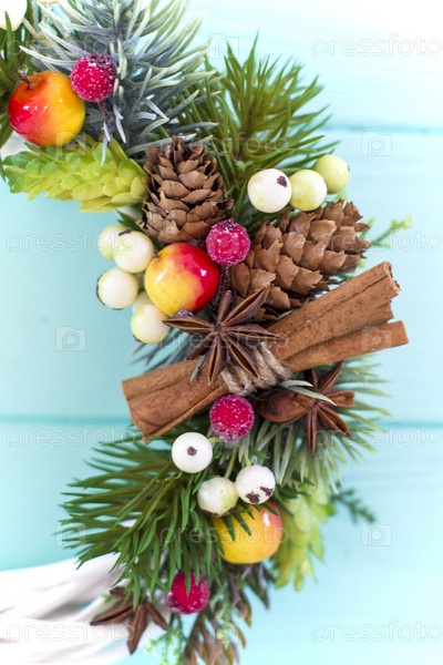 Рождественский венок на деревянном фоне