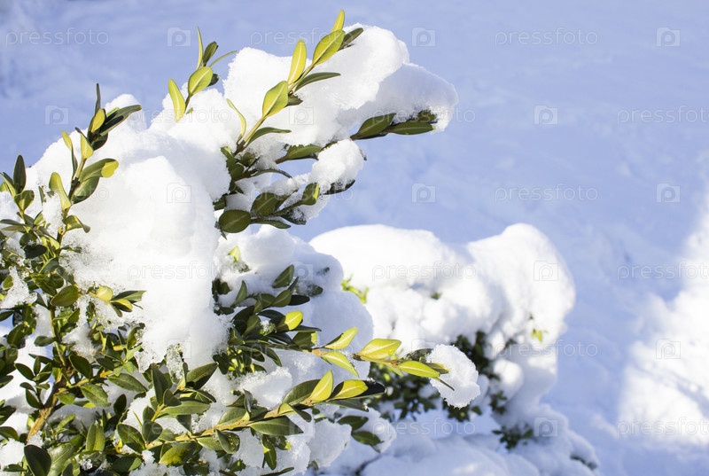 Снег на ветвях деревьев и кустов