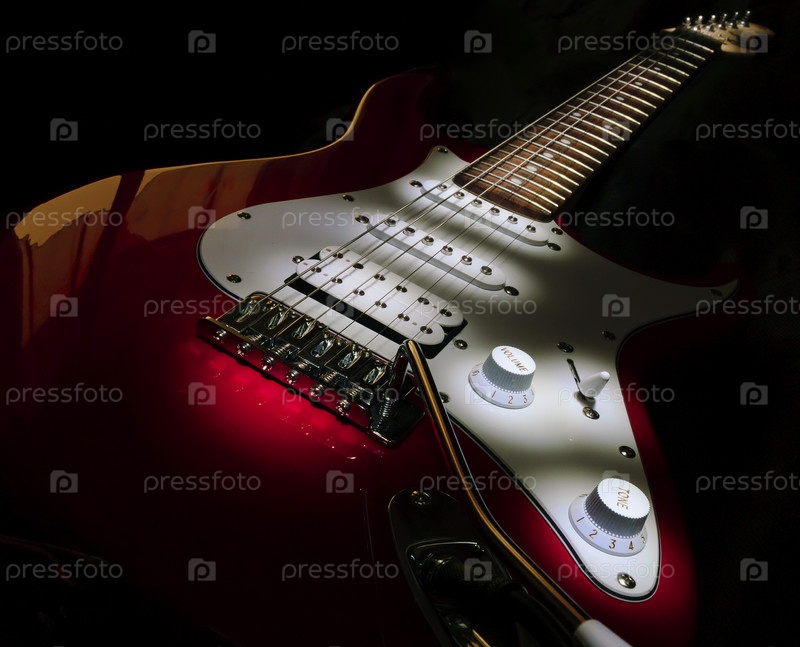 Красная электрическая гитара на черном фоне