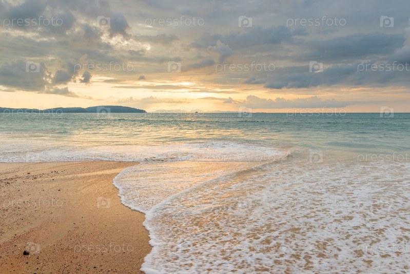 Морской прибой на песчаном пляже в Таиланде