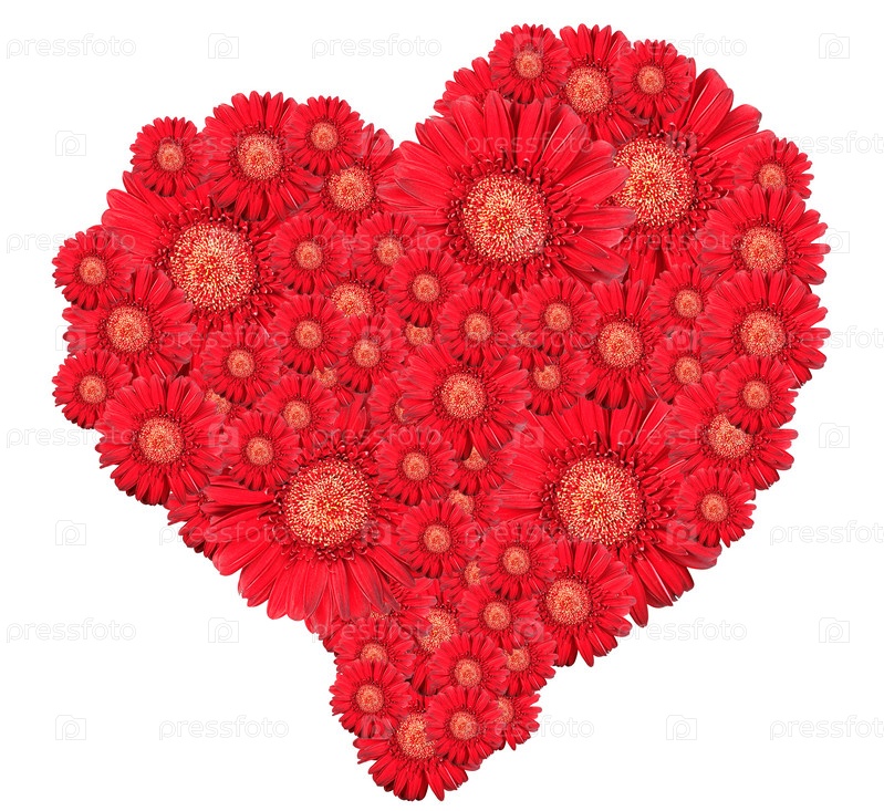 Сердце из красных цветов на белом фоне