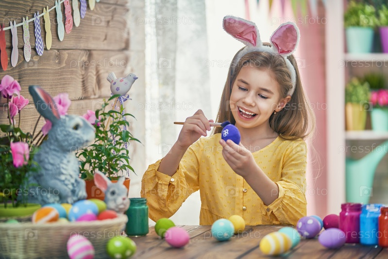 Ребенок красит яйца