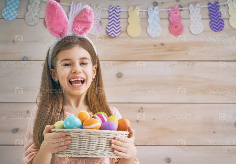 Девочка держит корзину с яйцами