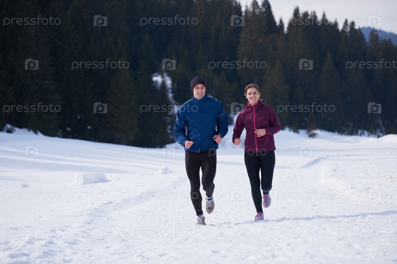 Бег трусцой на свежем воздухе на снегу