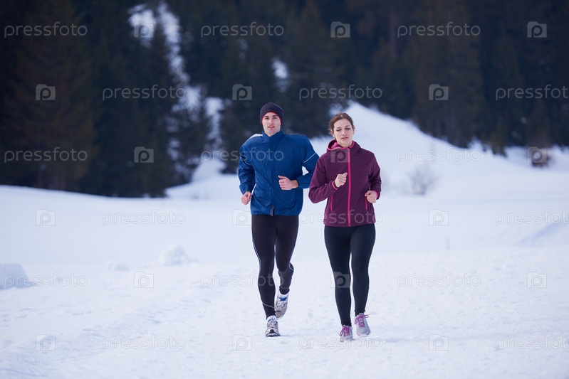 Бег трусцой на свежем воздухе на снегу